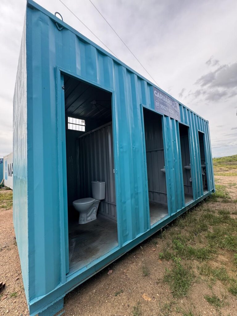 Os containers podem ser usados como escritórios, depósitos, banheiros e muito mais, sempre adaptados às suas necessidades.